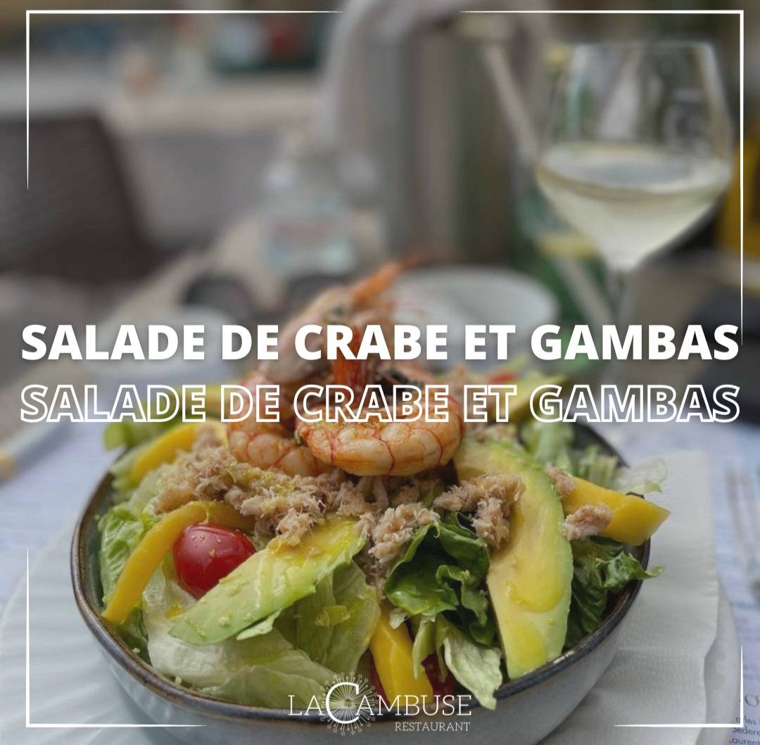 Parmi nos entrées incontournables, découvrez notre salade de crabe et gambas. Une composition généreuse et savoureuse qui mêle la délicatesse du crabe frais aux notes iodées des gambas délicatement grillées. Le tout agrémenté d'une vinaigrette légère au citron et d'une fraîcheur de tomates et de salade verte.